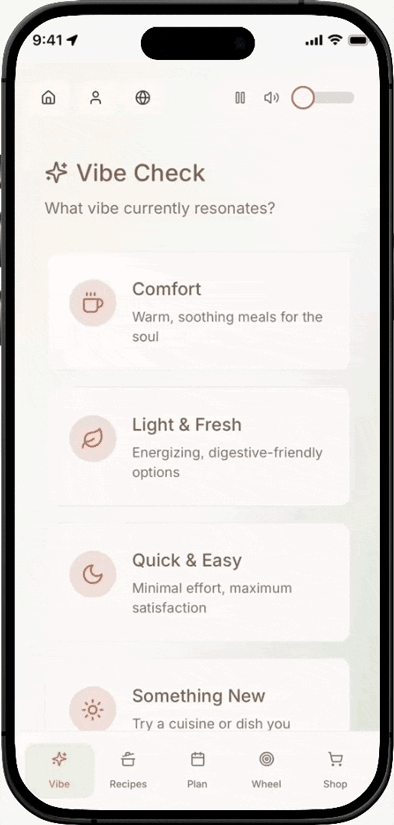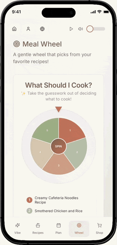 When you’re unsure, let the Meal Wheel decide. A light, playful way to ease decision fatigue and land on something satisfying.